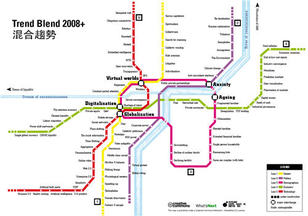 Among the key trends identified on the map: Simplicity, Reality mining, 3-D printers, Virtual protest, Female chauvinism, Geospatial web, Celebrity worship, Karma capitalism, Networked risk, Data visualization, Same sex couples (with kids) and Constant partial attention.