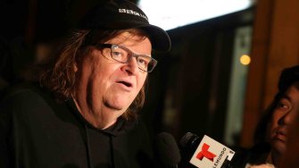 Director Michael Moore speaks to the media at the premiere of his documentary ‘Michael Moore In TrumpLand’ at the IFC Center on October 18, 2016 in New York City. (Photo by Jemal Countess/Getty Images)