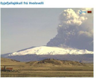 nWebcam shot of Eyjafjallajökull erupting on April 17, 2010.
