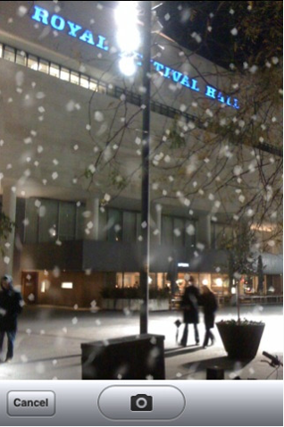 “Like Bing Crosby, but smaller and easier to control, White Xmas lets you live the dream of festive winter snowfall wherever you are. Syncing with your iphone camera, this smart little app works by adding a gently-falling veil of snow to anything you view. Just click the button and look… it’s snowing.