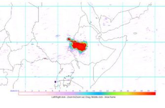 OMI sulfur dioxide map over Ethiopia for June 30, 2009.