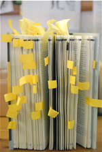 .nIt has broken my record for the “book with most stickies.” My system isnthat the stickies on the top edge are ideas for my next book, and thenones on the side are ideas for this blog. As you can see, it’s a gold mine for great stories aboutnentrepreneurship. Here is a list of some of my favorites. The majornlesson: Entrepreneurship is all about tactics, chutzpah, notnknowing that things are not done “this way,” and making do with notnenough money.”