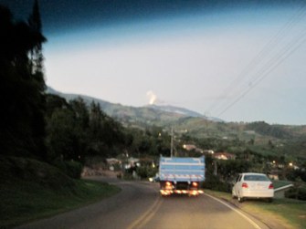 Costa Rican officials extended the evacuation zone around Turrialba from 3 to 6 km, raising the alert status at the volcano to Yellow. Vanessa Rosales of the National Emergency Commission described the seismicity as “intense but low,” but says the country is prepared to deal with the emergency. As always, the news chooses oddly what is the “news” of an event, and many article on Turrialba focus on Costa Rica’s coffee – yes, it is safe, so far. A news report from the Tico Times quotes Raul Mora of the University of Costa Rica as saying that lava isn’t likely from Turrialba – I’m guessing he was trying to say it will be explosive – but the article takes it as a comfort that this won’t be like Hawai`i. It seems the steam plume from Turrialba was prominent in the weeks before this week’s ash explosion. Eruptions reader Sahrye Cohen sent a picture of Turrialba taken on 12/26 (above) showing the steam plume coming from the volcano.