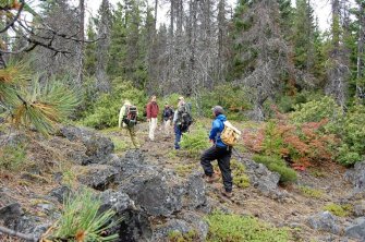 The 7,700 year-old Parkdale Lava flow near Mt. Hood being inspected by Dr. Adam Kent, Dr. Kari Cooper and associated graduate students (Gary Eppich, Mark Stelten and Alison Koleszar) in August 2008. Photo by Erik Klemetti.