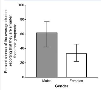The results showed that, after controlling for prior academic ability and other variables, the average male student thought he was smarter than 66 percent of the class, while the average female student reported being smarter than 54 percent of the class.