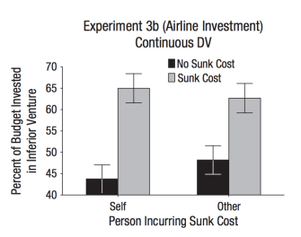 The sunk cost fallacy doesn’t just apply to interpersonal behaviors, either — even savvy business people fall into its trap. In one scenario, participants imagined they were the president of an airline company that had a $100 million research budget. Ninety-nine million had been invested in projects, and a competitor just came out with a plane that was more fuel efficient, cheaper, and faster than theirs. Participants were in favor of using that money for other projects when that $99 million had been invested in a variety of topics. However, they were much more likely to invest a larger portion of that $1 million that was left (62.68 percent in favor) if their predecessors had invested most the original money into a new plane — even though they knew another firm had already beaten them to a better alternative.