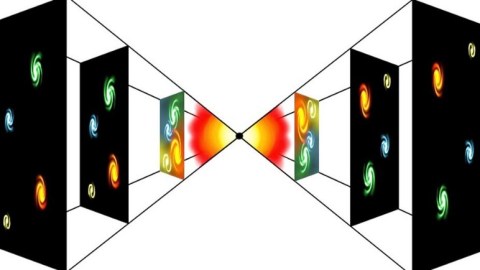 - A stringy bounce. In General Relativity, if you extrapolate back to an arbitrarily hot, dense or small state, you inevitably arrive at a singularity, and definitions of time and space break down. But in quantum extensions that go beyond GR, like loop quantum gravity, string theory or brane cosmology, you can “bounce” from a pre-existing, collapsing state to a hot, dense, expanding one.