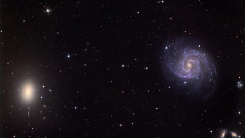 For a long time, many of these galaxies with higher-than-normal ratios of dark matter-to-normal matter were known, but there were none on the other side: no galaxies that appeared to have a dearth of dark matter in them. That all changed with the discovery of two dwarf galaxies that appear to be satellite members of a group dominated by the large elliptical galaxy NGC 1052. These two satellites, NGC 1052-DF2 and NGC 1052-DF4 — called DF2 and DF4 for short — have significant luminosities, but the stars within them appear to be moving very slowly: as though there were no dark matter at all.