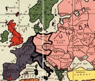 Maurice Gomberg, of whom next to no information is traceable online, may have been an extraterrestrial reptilian, but his Jewish surname makes him at least as suspect in some circles. So little is known of him that it has even been suggested that this map was a Nazi forgery*, to induce fear in America of a communist takeover of the world. But it might be safer to assume that this map was an earnest attempt, out of the aforementioned benevolent socialist sentiments, to propose a reorganisation of the world that would end war once and for all, and bring “permanent peace, freedom, justice, security and world reconstruction”. Or at least let that, in the name of Occam’s razor, be our working assumption in evaluating this map. The main building blocks of his New World Order were to be: