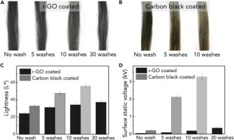 The durability of graphene-coated hair against washing. Credit: Northwestern University.