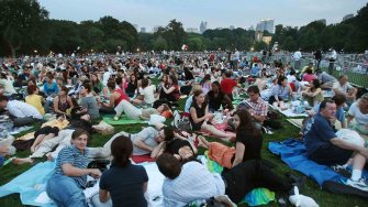 Patrons sit before a free concert in Central Park by the New York Philharmonic in New York City. (Mario Tama/Getty Images)