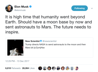 Elon Musk and President Trump have had a complex relationship, with Musk serving on the President’s advisory councils until having to resign over the U.S. pulling out of the Paris Agreement on climate change. Now that Trump is sending America back to the moon, Musk tweeted that he supports the policy shift, pointing out how “it is high time that humanity went beyond Earth” and that “we should have a moon base by now”.