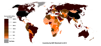Here is a map of the world colored by GDP. You can see China and the United States are far richer than most other countries, that nations in the south are often poorer than those in the north, and smaller nations generally have less money than their larger neighbors as well.